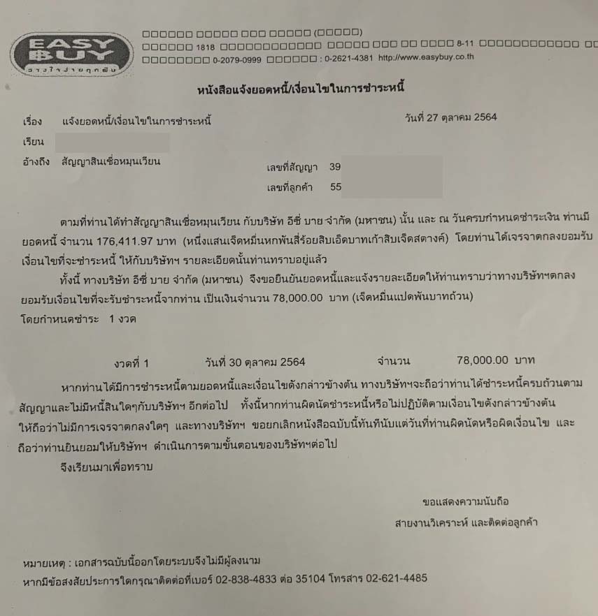 วันที่ 26 ตค.64 เจ้าหน้าที่โทรมาแจ้งว่า ได้ยอดปิดที่ 78,000 บาท เราตกลงชำระยอดนี้ และเราจะเข้าไปรับเอกสารเงื่อนไขการชำระที่สาขาUmay+